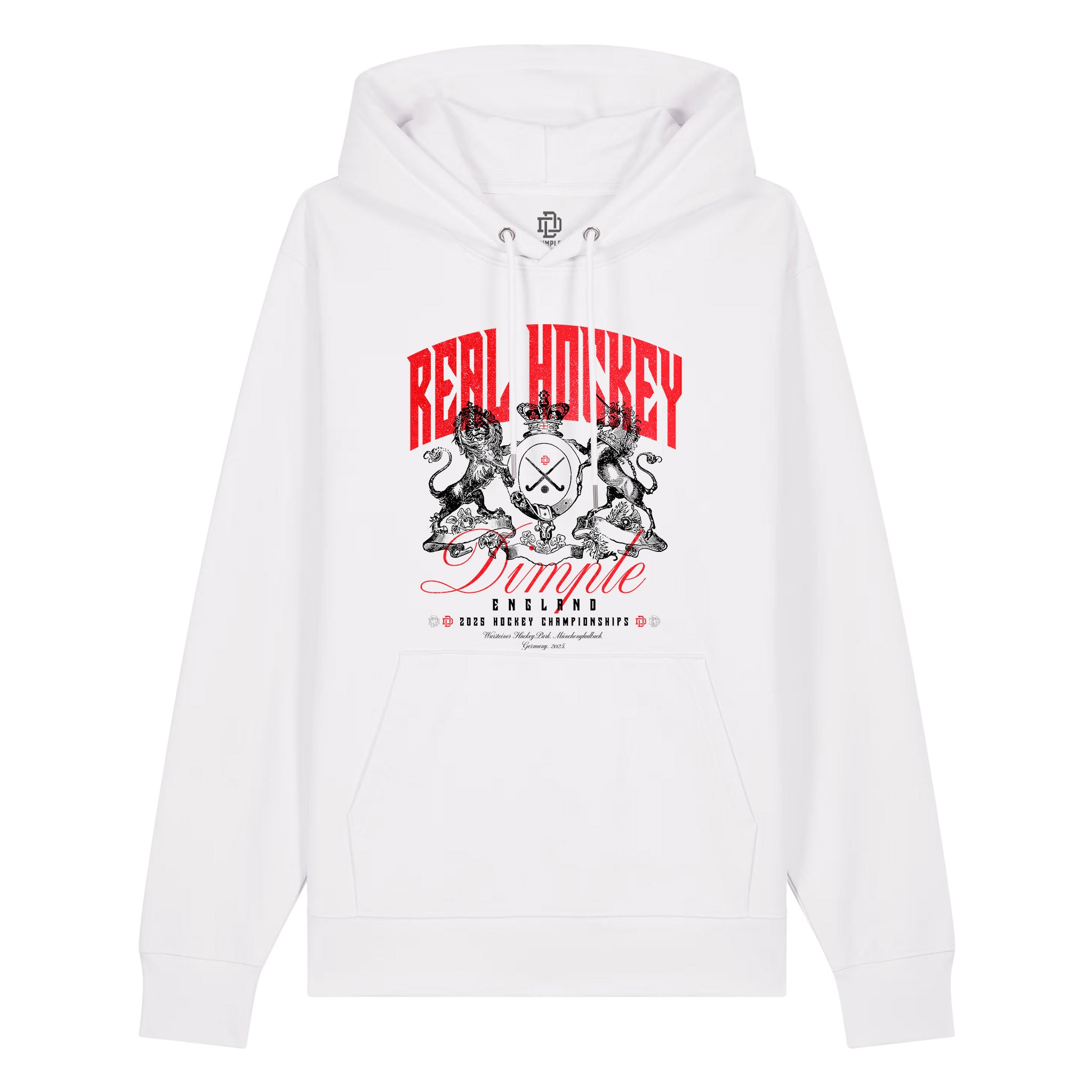This Real Hockey England hoodie features a print on the chest. This garment is unisex, made with organic cotton and printed ethically.