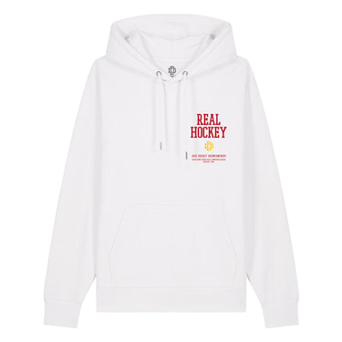This Real Hockey Spain hoodie features a print on the left breast and a big print on the back. This garment is unisex, made with organic cotton and printed ethically.
