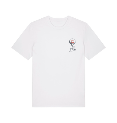 This Luciana white t-shirt features a small print on the left breast and a big print on the back. This garment is unisex, made with organic cotton and printed ethically.