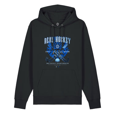 This Real Hockey Scotland hoodie features a print on the front. This garment is unisex, made with organic cotton and printed ethically.